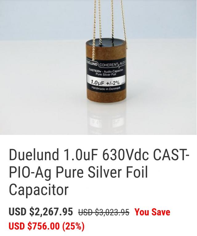 Duelund Coherent Audio 2 x 1. 0 uF Duelund pure silver cast 630Volt!!