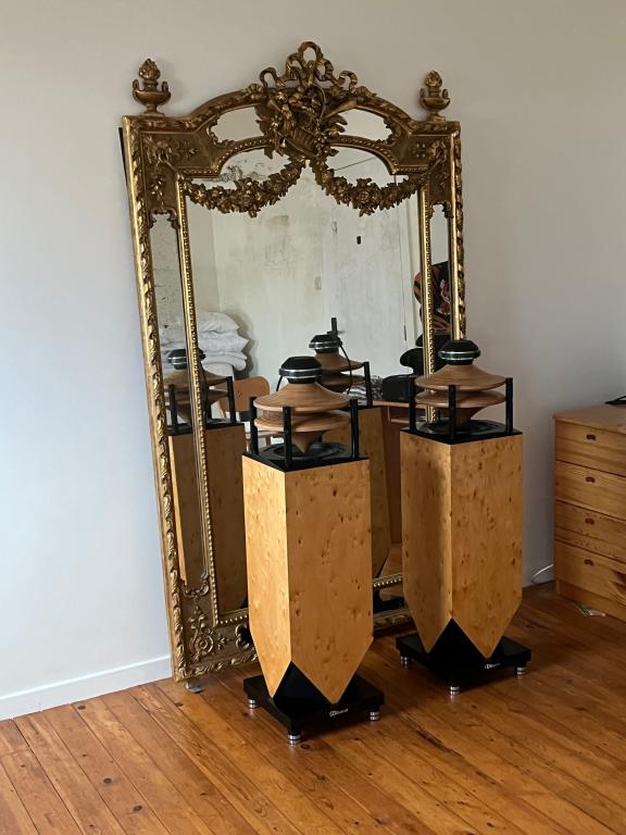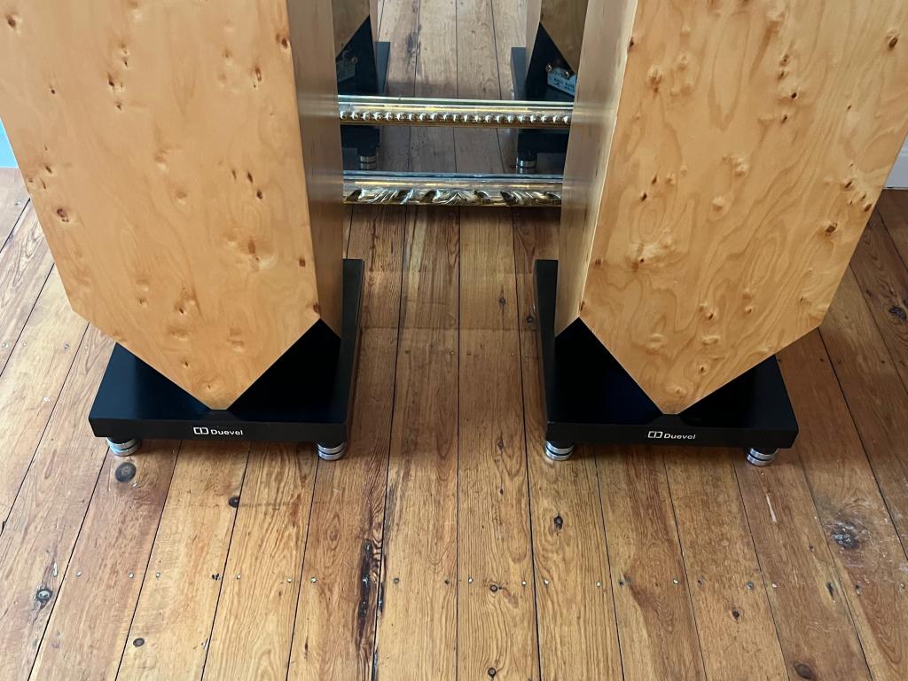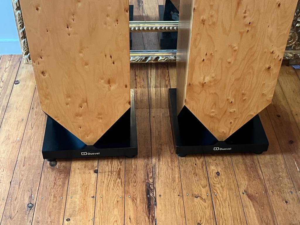 They are sold without the original stands that you can see in some photos between the black base of the speakers and the floor, which cost €400 new. If you are interested, I am selling them for €200, which is not included in the asking price for the speakers. Competitive price for the speakers as the sale is urgent.