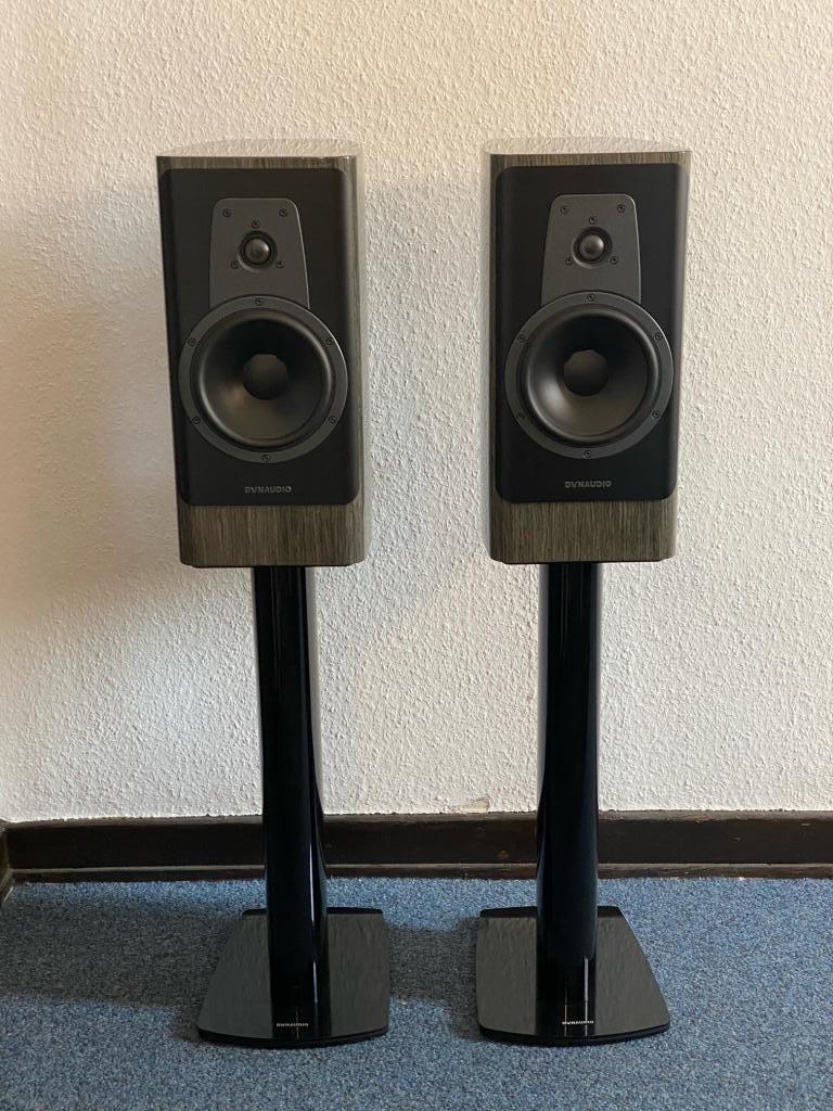 Wunderbares Lautsprecherpaar (Grey Oak) aus besten Dynaudio Zeiten mit Original-Stands (schwarz).