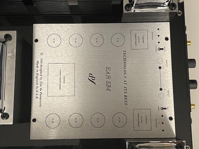 Die EAR 534 ist eine Push-Pull-Endstufe mit 50 Watt pro Kanal in Stereo, die acht EL34 (vier pro Kanal) an 4, 8 und 16 Ohm nutzt. Self-Biasing-Betrieb mit symmetrischen oder unsymmetrischen Eingängen.