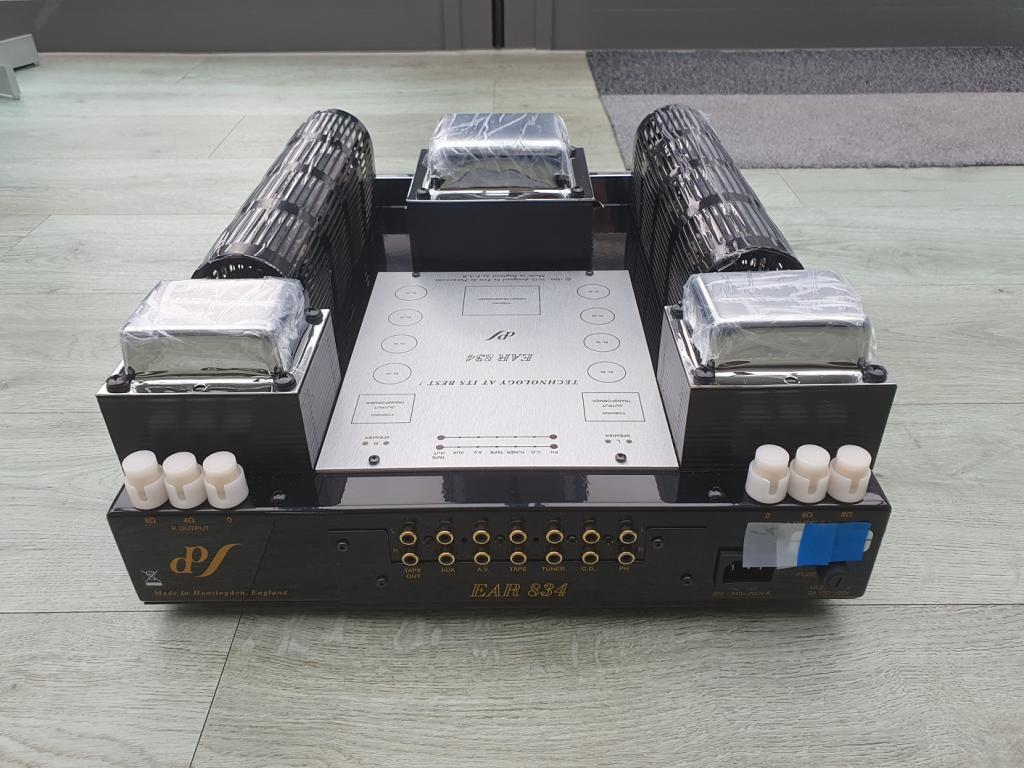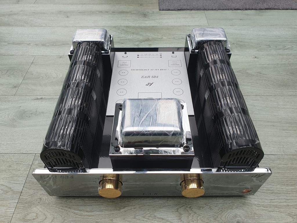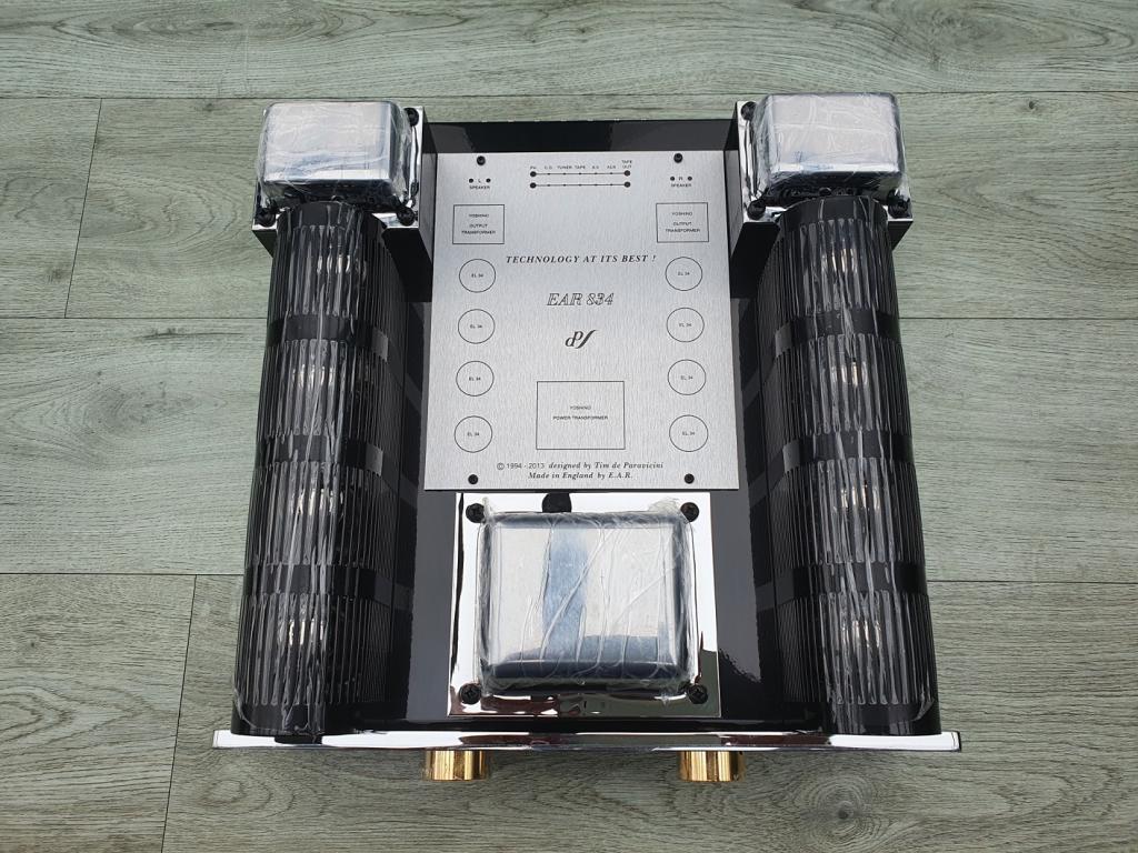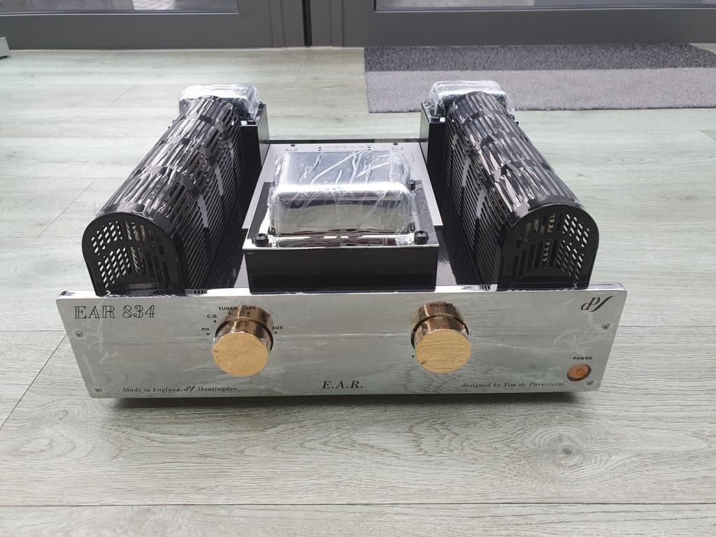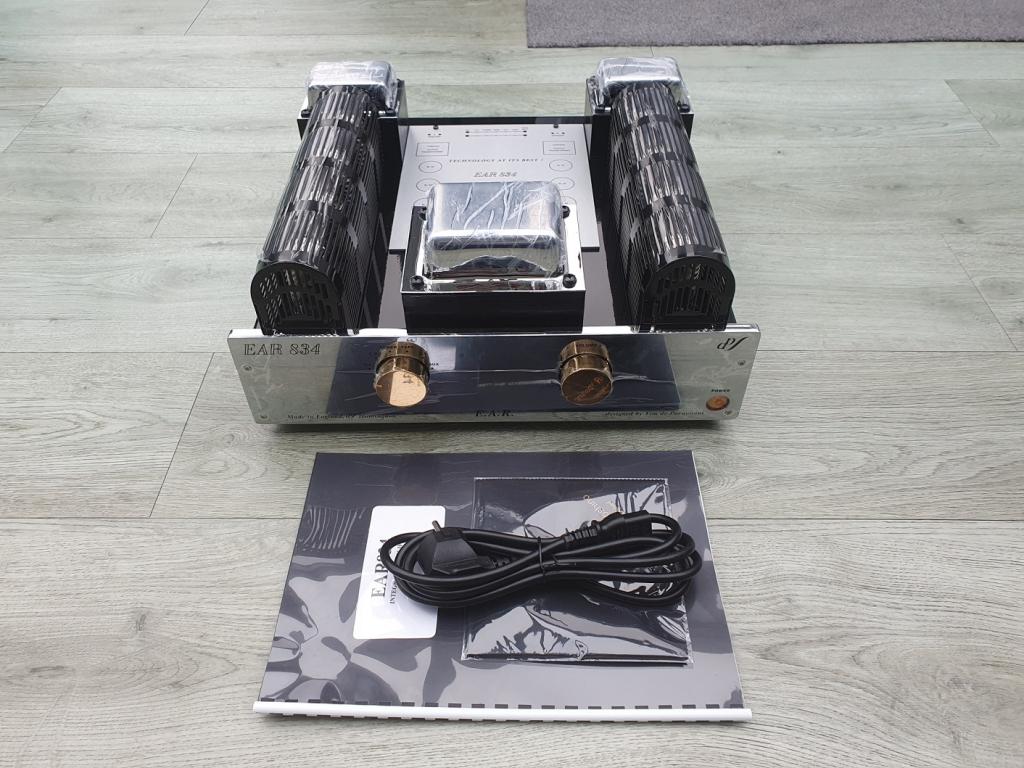 Der EAR Yoshino 834 ist der günstigste Röhren-Vollverstärker im Programm von Tim de Paravicini. Mit seinen acht EL34 Röhren leistet 50 Watt pro Kanal und kann damit eine Vielzahl von Lautsprechern locker betreiben. Durch die Auto Bias Schaltung misst sich der 834 beim Röhrenwechsel selbständig ein. Er verfügt über 6 Line Eingänge und einen Tape Ausgang, um z.B. einen Kopfhörerverstärker anschließen zu können.