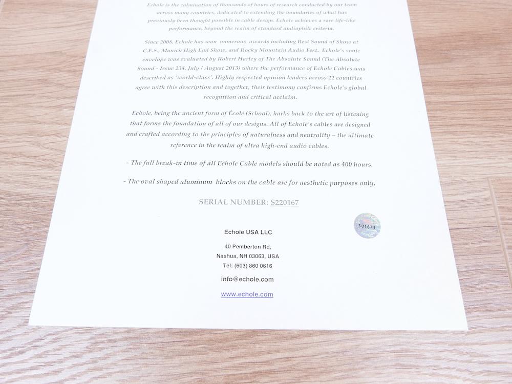 One pair of Echole Orius high end audio interconnect cables in a very good condition. The unique properties of the Orius are derived from the extremely high quantity of the most refined silver, gold and palladium alloy. The Orius will bring you a combination of ultimate transparency, bass control, speed, coherency, soundstage width and depth and the most noticeable sense of realism. The length is 1,0 metre and they have the original XLR connectors. Serial number is 220167. The original Echole leather bag and certificate are included. Retail price is 11.500 euro. Check our other listings for more interesting items. Free shipping worldwide!