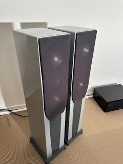 Zum Verkauf steht ein Paar ELAC FS 208.2 Standlautsprecher in silber/grau.