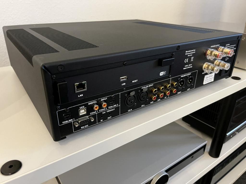 Der ECI 6DX ist ein vollsymmetrischer High-End-Stereo-Vollverstärker des norwegischen Herstellers Electrocompaniet. Er kombiniert einen klassischen Analogverstärker mit einem integrierten Digital-Analog-Wandler (DAC) und einem leistungsstarken Netzwerk-Streamer