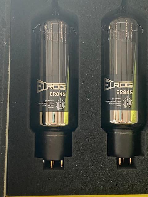1 Paar, 2 Stück, ELROG 845 Endröhren, technisch und optisch einwandfrei, am dunklen Röhrensockel feine Kratzer durch das Einbauen der Röhren, Preis 1.500 € / Paar (Neupreis 1.850 €).