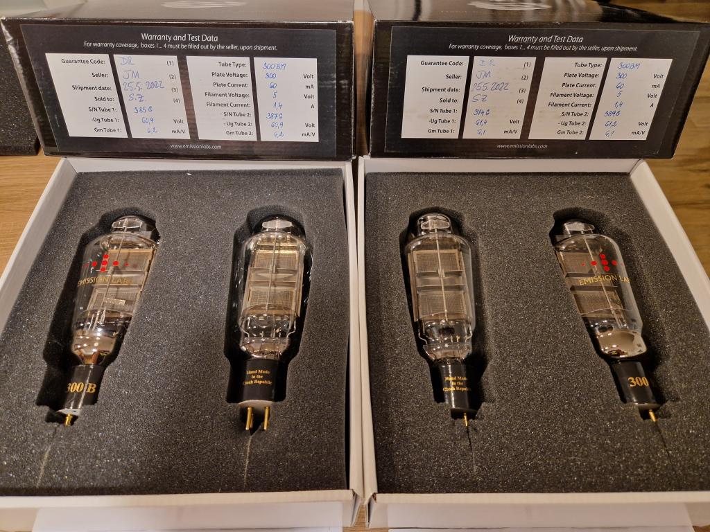 I am selling four (4) Emission labs EML 300B MESH Plate lamps (2 pairs, factory matched pairs), lightly used and in excellent condition (no smoking environment). Ideal for audiophiles looking for true mesh-plate 300B sound.