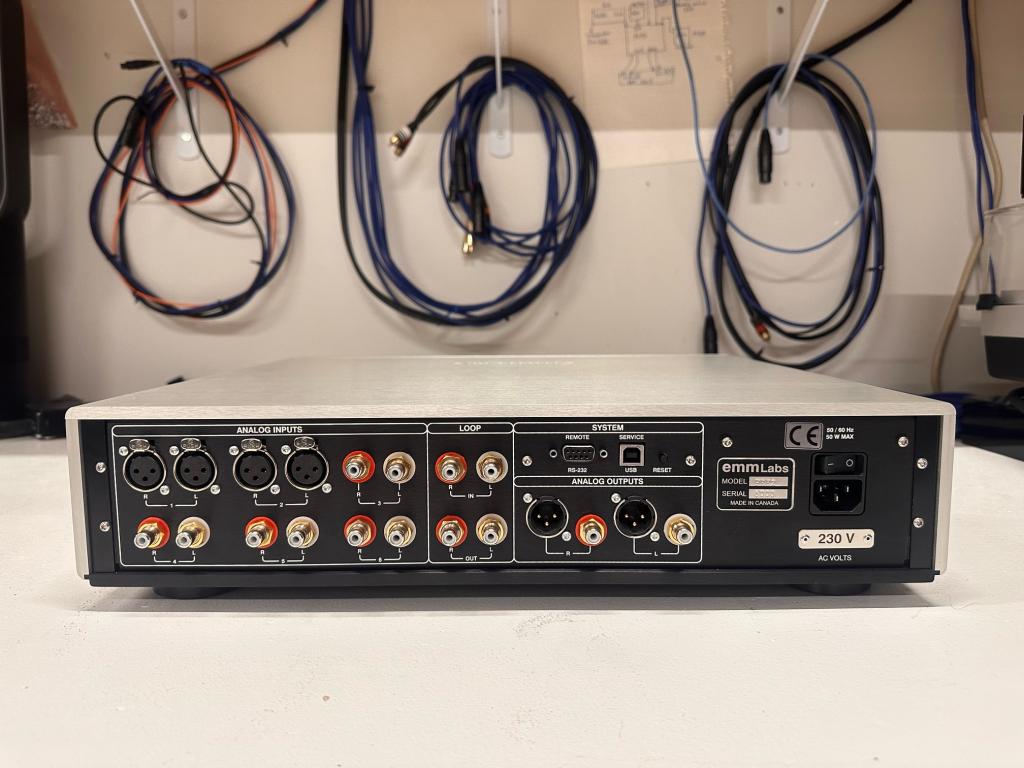 I am selling the EMM labs PRE2 SE reference preamplifier in perfect condition. In July 2024, the preamp was directly with the EMM labs headquarters, where it was checked and the new metalwork was changed from black to silver. I can document e-mail communication. PRE2 SE is fully updated, the update was introduced after 2019. The price for the update was 1800USD + shipping. The update was also done directly in EMM labs. PRE2 SE has a complete package with accessories. It is an Original EU 230V version.
