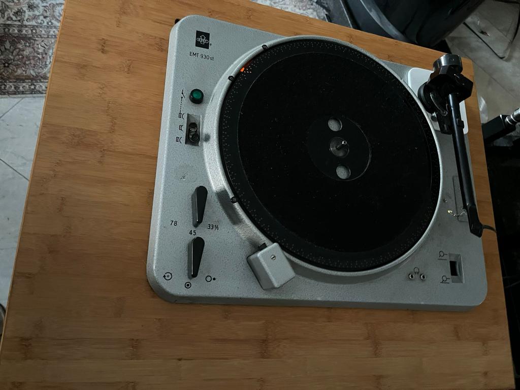 EMT 930 in großer Bambuszarge ohne Entzerrer. Als Tonarm fungiert der exzellente Misson Mechanic. Passende eher hart aufgehängte Tonabnehmer wie Koetsu, Denon 103-Derivate sind vorhanden.