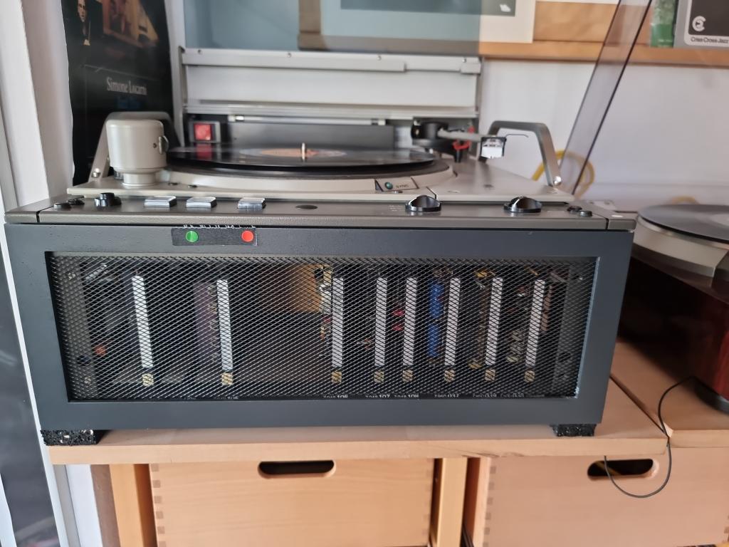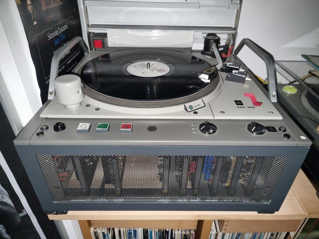 Volle Ausstattung (ohne Tondose) mit komplett revidierten Platinen für MC Betrieb. Rechnung von ESC Erftstadt Tonstudiotechnik Roger Schult liegt vor. Wenig gelaufen, da ehemaliges Reservegerät beim WDR in Köln. Dementsprechend sind am Gerät und auf der Haube allenfalls marginale Gebrauchsspuren zu finden. Spätes Modell mit dem EMT 929 Tonarm mit leicht rauer Oberfläche. Eine Besonderheit ist der seltene Stahlrahmen in den das Gerät eingelassen wird/ist und als Standgerät betrieben werden kann. Alles funktioniert einwandfrei. In diesem außergewöhnlich guten Zustand und unverbastelt nur schwerlich ein weiteres Mal zu bekommen. Abholung, Testen und Probehören in Brühl/Köln. Ein Versand ist ausgeschlossen bzw. muss komplett vom Käufer auf eigenes Risiko organisiert werden.