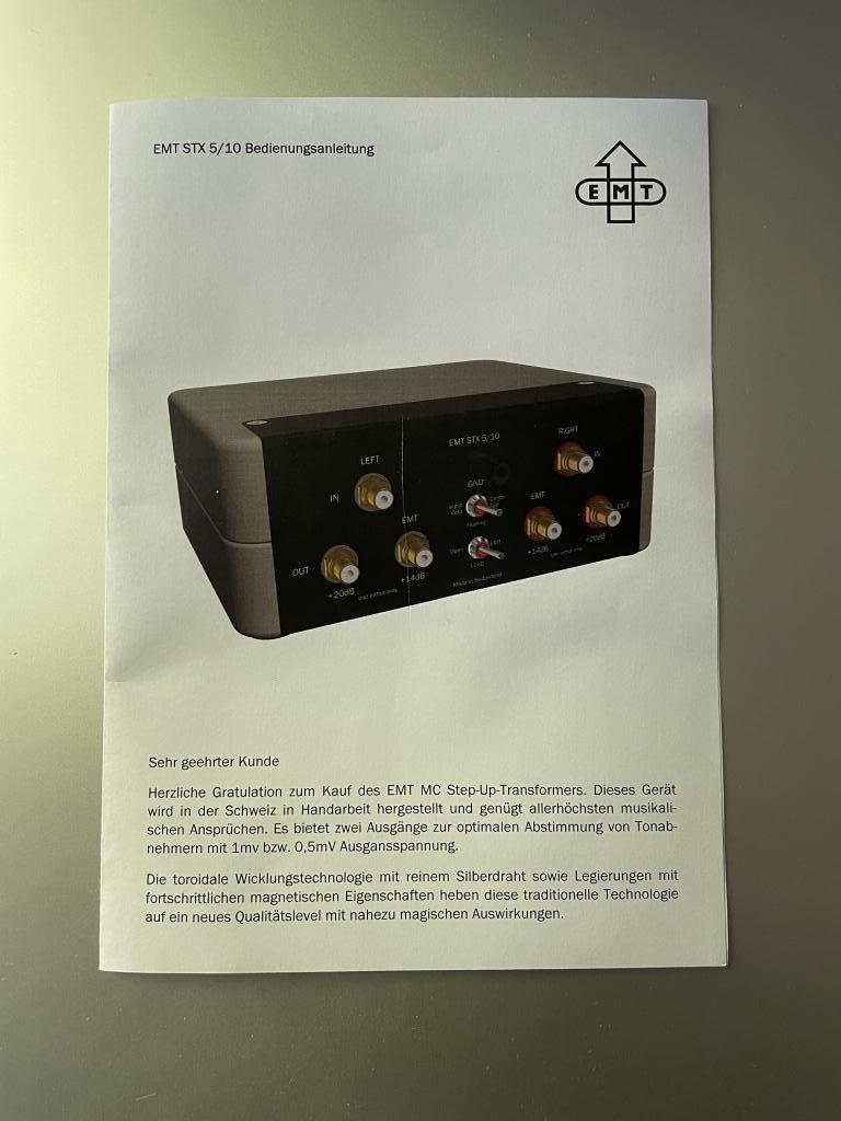 Selling a hardly used EMT STX 5/10 MC step-up transformer (SUT) made in Switzerland.