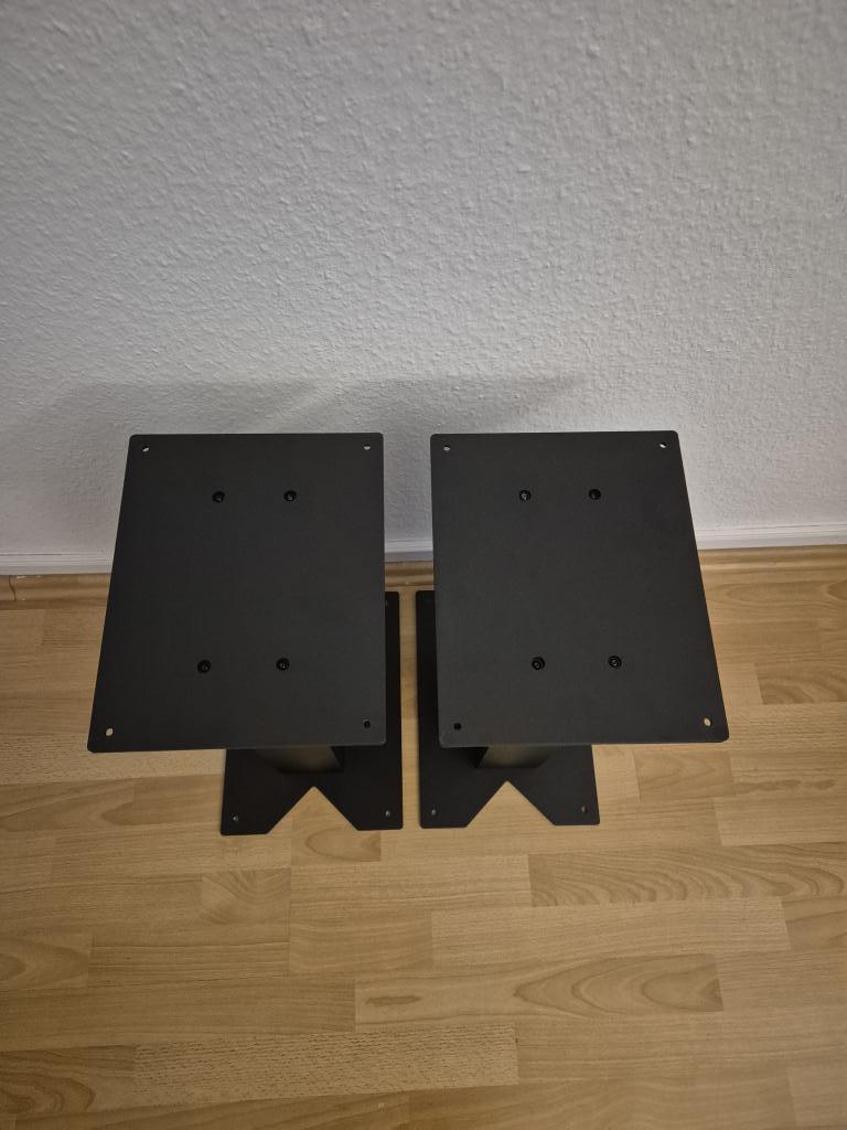 I have included two sheets of thin foam (plates) which can be seen on the last two pictures. These can be cut to the size of the stand plates to avoid direct contact between the metal plate and the speaker's bottom side.