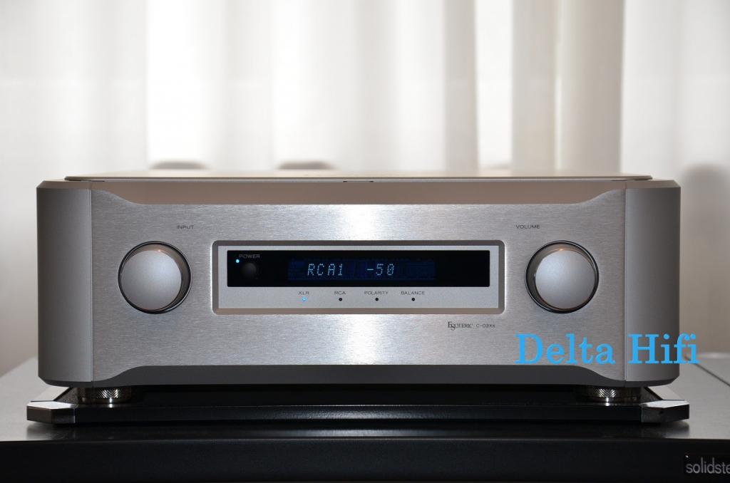 Esoteric C-03Xs bei uns in der Vorführung in Kombination mit Esoteric K-03XD SACD/CD Player und Esoteric S-05 Class A Endverstärker. Sie können gerne telefonisch einen Termin zum Probehören in unserem Delta-Hifi Studio vereinbaren, wir würden uns freuen Ihnen diesen Traum- Vorverstärker vorführen zu dürfen.