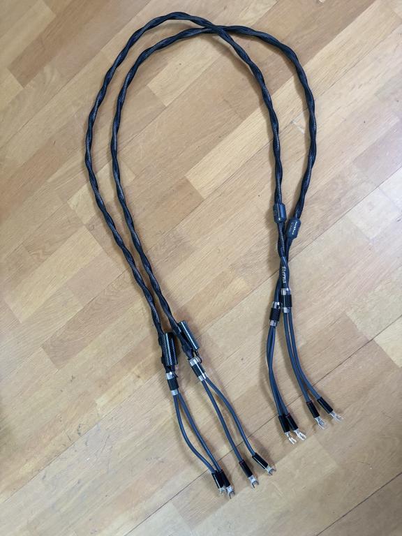 Esprit Eterna G9 speaker cable in very good condition with spades connectors. The cable work perfectly well. The length is 2 meters and the box is included. Shipping cost are not included and will be specified when delivery place is known.