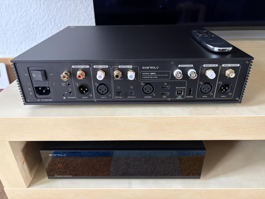 Eversolos Flaggschiff DA-Wandler (Vorverstärker), der weit über seine Preisklasse hinauspielt. In zahlreichen Tests bestätigt. Einwandfreie eARC-Implementation, hier an einem Sony OLED (2021) betrieben.