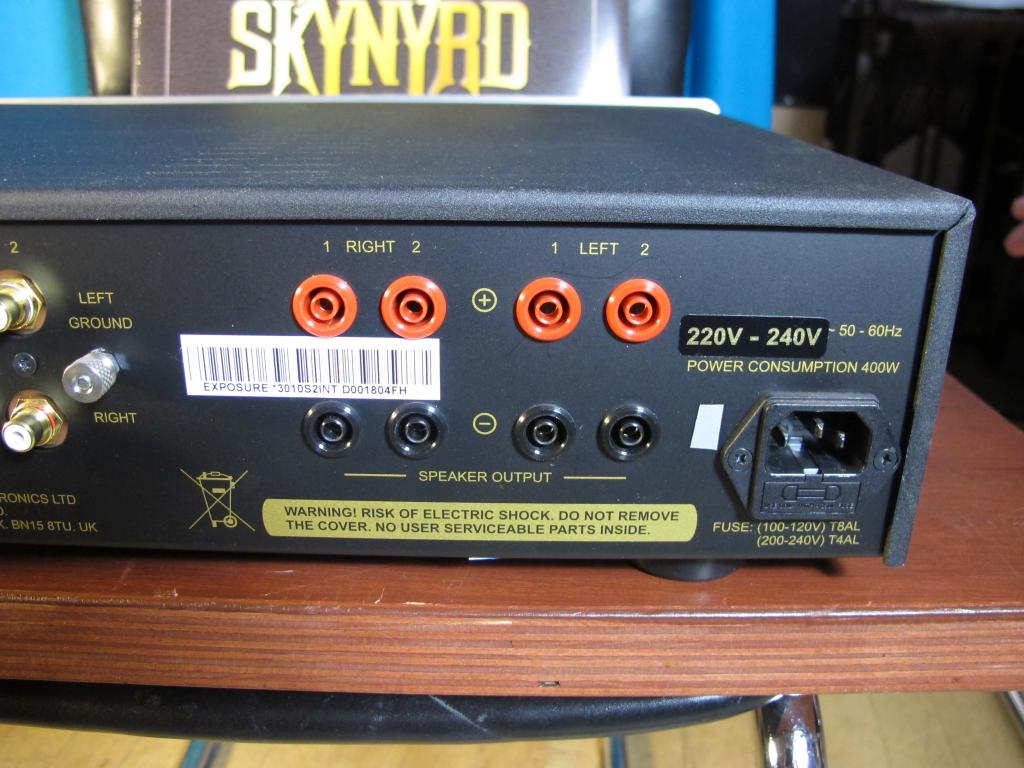 Line input impedance: 17k ohms. Optional phono input impedance: 47k ohms (moving-magnet board; moving-coil board is adjustable from 100 ohms to 1500 ohms). Frequency response: 20Hz–20kHz, ±0.5dB. Total harmonic distortion: 60dB, 20Hz–20kHz. Output power: 110Wpc into 8 ohms, 1kHz.