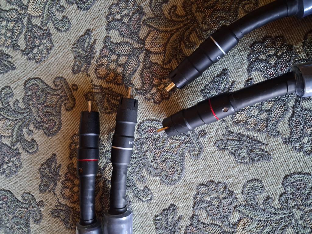Faber's Cable Fifth Element audio interconnect cables, RCA connectors, 140 cm. Just finished the burn-in. https://www.fabercables.com/