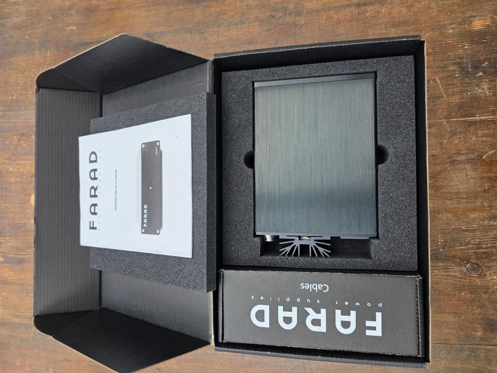 Angeboten wird hier ein begehrtes, leistungsstarkes lineares Superkondensator-Netzteil mit geringem Platzbedarf in OVP mit allem Zubehör, wenig genutzt, technisch und optisch im Bestzustand. Ich habe es für den Uptone Audio Etherregen Switch gekauft, nutze jetzt jedoch ein anderes Linearnetzteil mit 2 DC-Ausgängen, da ich nun auch noch einen Router mit sauberem Strom versorgen muss.