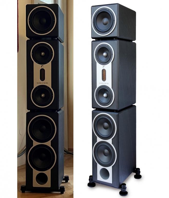 Mittelton-System zwei 180 mm FISCHER & FISCHER-Konuslautsprecher mit karbonisiertem Papier, Karbonfolien Sandwichmembrane und Alu-Phaseplug
