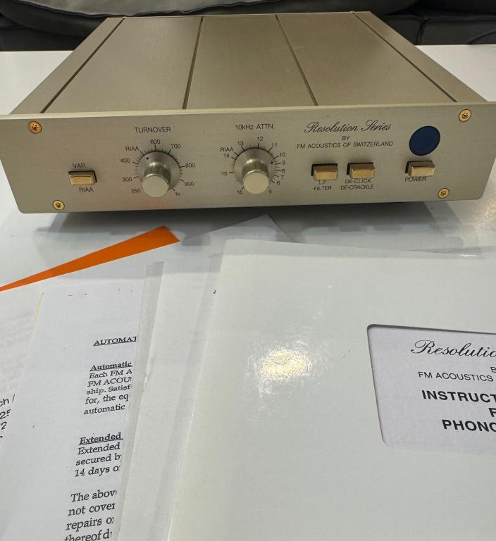 FM Acoustics 123 Precision phono linearizer/preamplifier, Class A, De-Click / de-crackle circuits, including power supply.
