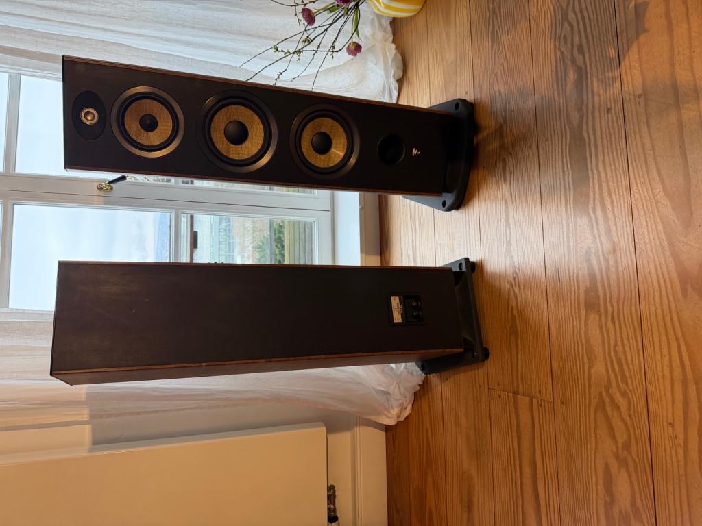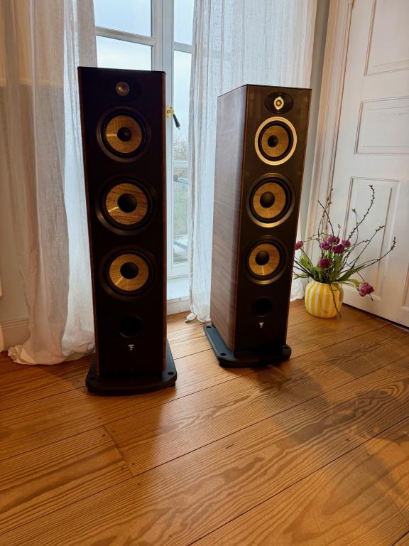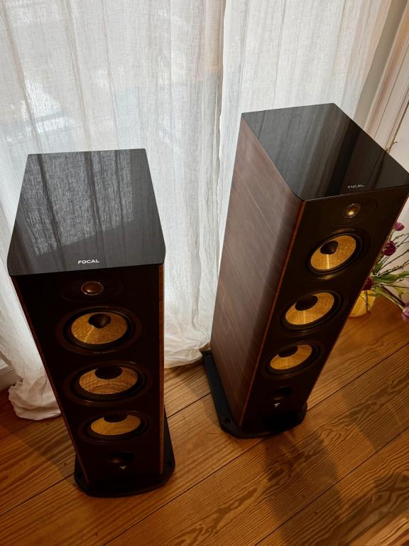 1 Paar Focal Aria 948 in Nussbaum aus Erstbesitz in sehr gutem Zustand mit Abdeckungen, komplettem Zubehör und Original-Verpackung. Ich würde noch 2x4 m Naim Lautsprecherkabel (Bananas) drauflegen.