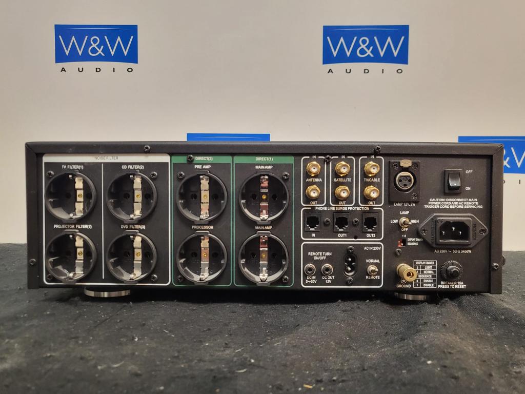 De Furutech Daytona 303E is een high-end AC Power Line Filter & Distributor met drievoudige afgeschermde zones, ontworpen om ruis, spanningsfluctuaties en elektromagnetische storingen drastisch te verminderen.
