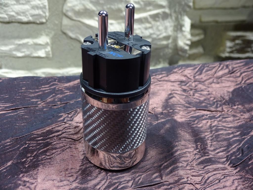 Das Gehäuse besteht aus Edelstahl mit einer Einlage aus versilberten Carbonfasern. Die Kontaktelemente bestehen aus rhodiniertem OFC-Kupfer und sind unmagnetisch. Sie sind in einem mikrofoniedämpfenden Material (NCF) eingefasst. Dadurch werden Verzerrungen durch Kontaktvibrationen reduziert.
