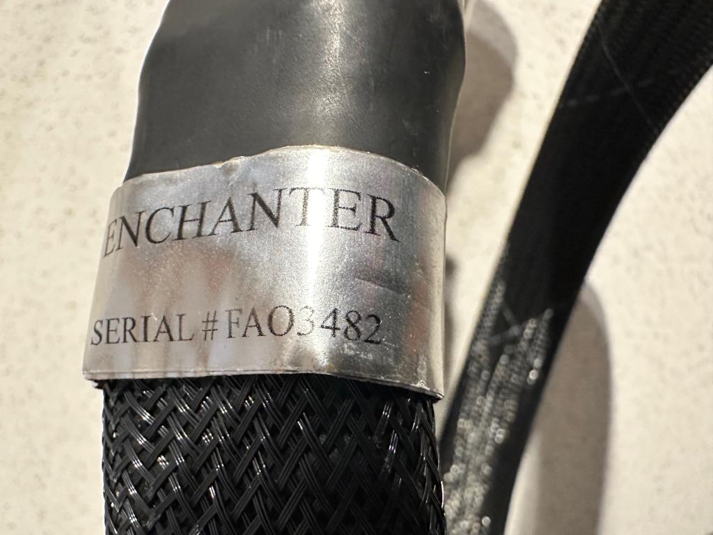 Slightly used, flawless, like new one of the best power cords on the market, the Fusion Audio Enchanter Rhodium power cable. The Enchanter power cord is designed for high current applications. This cord is ideal for amps, power conditioners and preamps, also good for any other electronics and setups aiming to achieve total transparency and natural sounding. A copper and silver foil hybrid with cryo treated plug and iec.