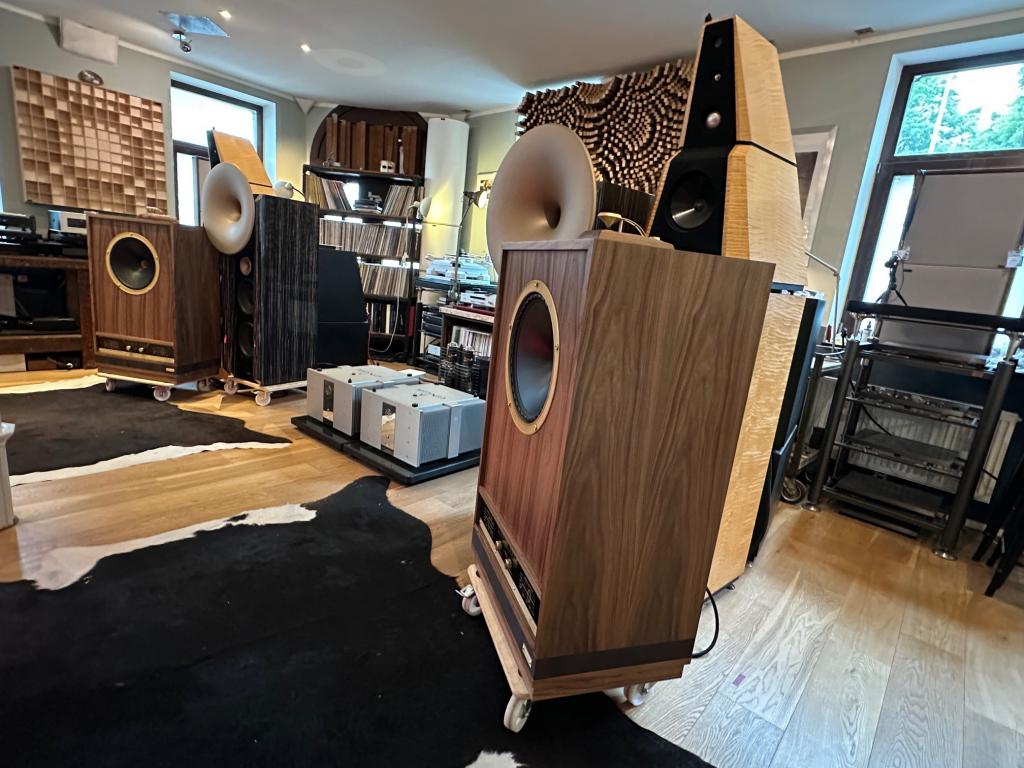 Was gefällt ist, dass die Lautsprecher mit diesem Chassis in den techn Daten mit 97db Wirkungsgrad angegeben sind, entsprechend kann man diese Lautsprecher auch mit Röhren amps betreiben, allerdings sollten diese in der Lage sein, einem grossen Basschassis auch etwas Kontrolle geben zu können (zB Amps von Air Tight, Kondo und Phasemation, die ihre Röhrenverstärker explizit an solch grossen Chassis entwickeln)