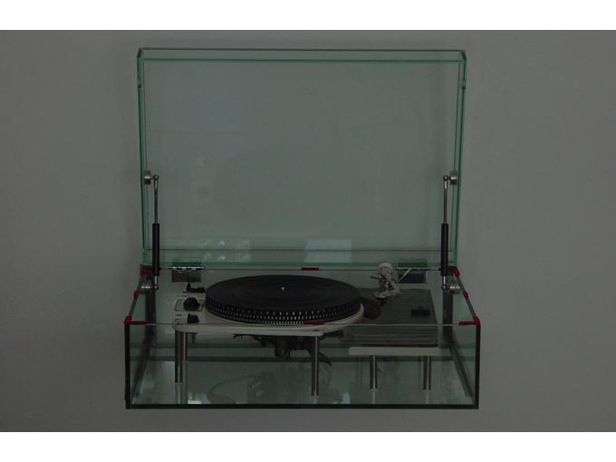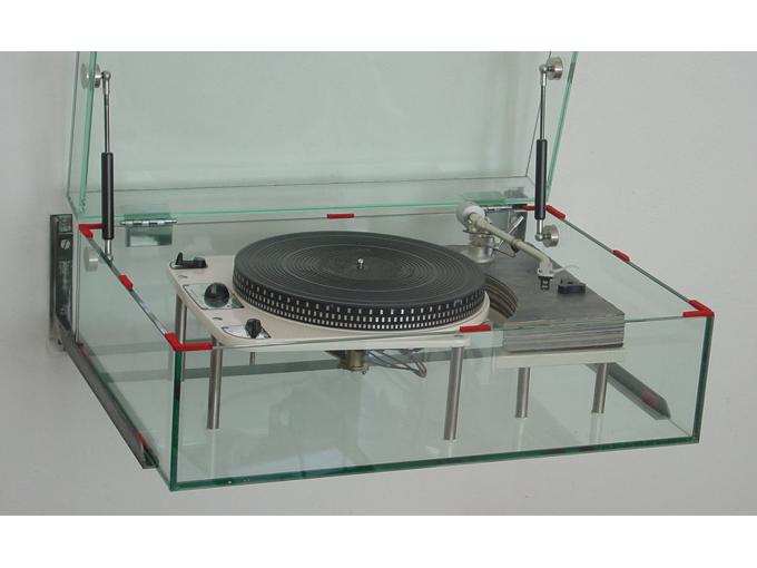Wie ein Gemälde braucht dieser Plattenspieler Platz, um zu wirken. In der abgebildeten Aufstellung wurden die notwendigen Kabel durch ein eigens dafür in der Wand verlegtes Rohr nach unten geleitet, damit der Plattenspieler optisch, auch von Kabeln befreit, schwebt. Die Halterung bedarf einer soliden Montage, wobei die genaue Justage des Rahmens nach der Montage durch Einstellschrauben erfolgt.