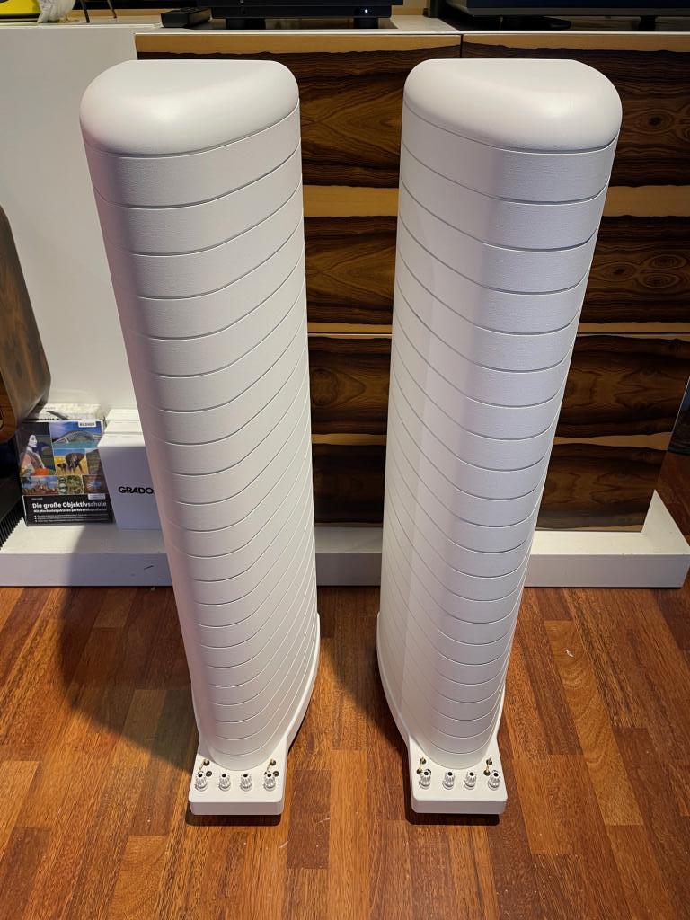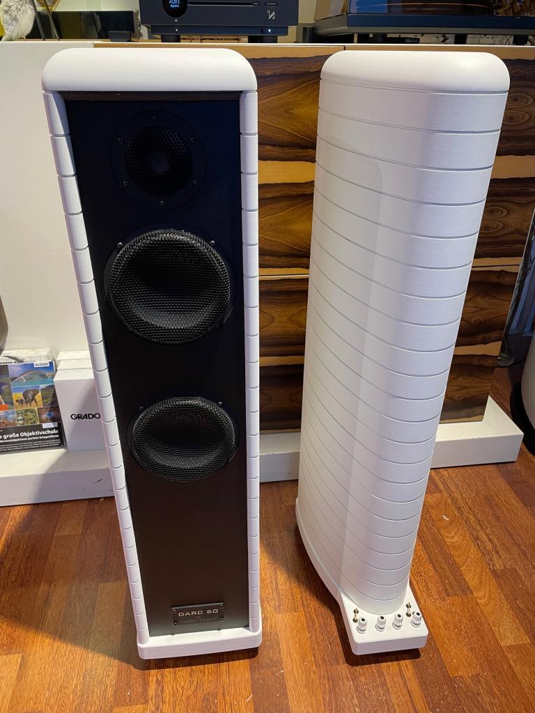 In Kundenkommission geben wir ein paar makellose Gauder Akustik DARC 60 Double Vision mit Keramikhochtöner in weiss ab