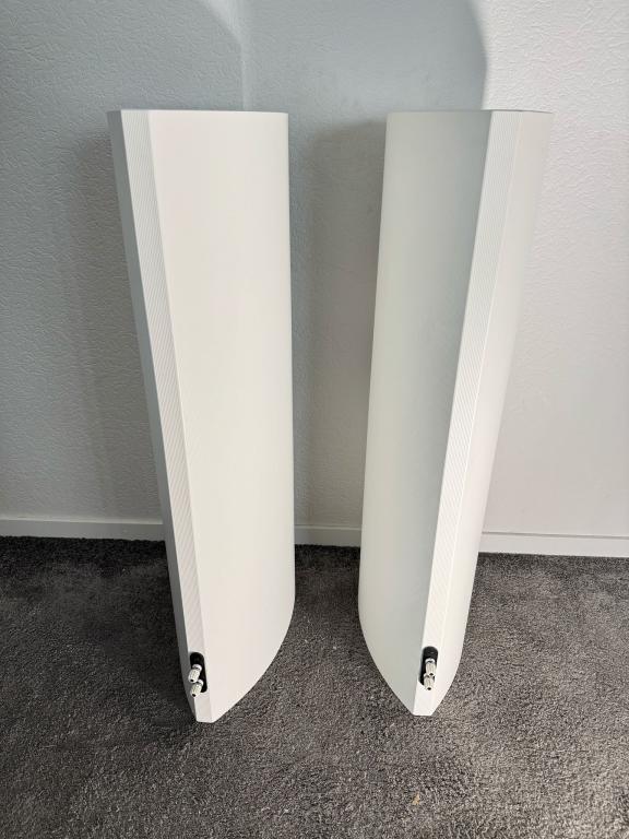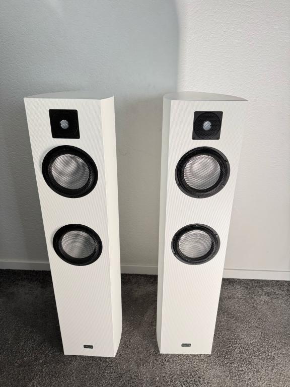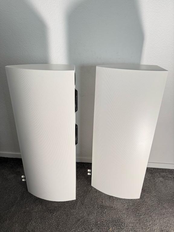 Here we sell an used but good condition pair of Gauder Akustik Vescova speakers in white. One of the speakers has traces of use.