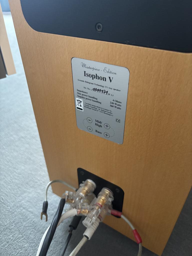 Isophon-Lautsprecher: Das Bass-Fundament wirkt wie felsenfest in Granit eingemeißelt, leistet sich keine Spur an störender Unsauberkeit und zwängt sich dennoch nicht der Musik auf. Der Bass ist allpräsent, ohne in störende Überbetonung zu verfallen, bietet ein souveränes Fundament und keine oberflächliche Kosmetik. Also ein ehrlicher, verlässlicher Bass, dem jeder Hang zur künstlichen, unpassenden Übertreibung abgeht. Der Hochtonbereich wird mit einer solch hohen Auflösungsgabe wiedergegeben, dass selbst die kleinsten Klangdetails harmonisch in der Gesamtwiedergabe zu finden sind, verfällt aber glücklicherweise nicht in ein zu analytisch wirkendes Klangbild, welches zwar mancher Highend HiFi-Purist schätzt, was aber inzwischen landläufig auch bei sehr anspruchsvollen Hörern aufgrund des eher zurückhaltenden Faszinationspotentials nicht mehr unbedingt im Trend liegt.Auch wenn eine feinnervige Umsetzung, etwa bei Klassik-Aufnahmen gefragt ist, wird sie höchsten Ansprüchen absolut gerecht, ergänzt diese aber mit einer ordentlichen Portion Dynamik und Spielfreude. Eine exzellente Stimmwiedergabe mit facettenreichem Klangspektrum und einer hervorragendem räumlichen Abbildungen.
