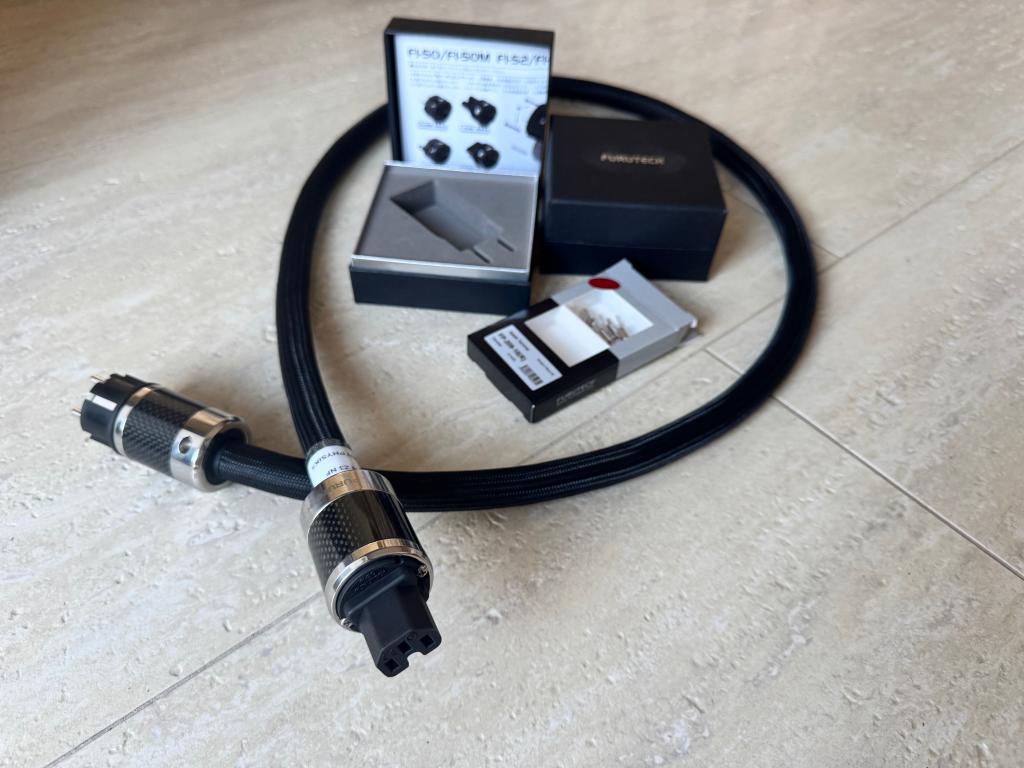 biete ein Netzkabel Pion NF3 der bei den German Physiks Verstärkern oft verwendet wird , neu Konfektioniert mit neuen Furutech Steckern in Schwarz, Rohdierte Kabelschuhe von Furutech