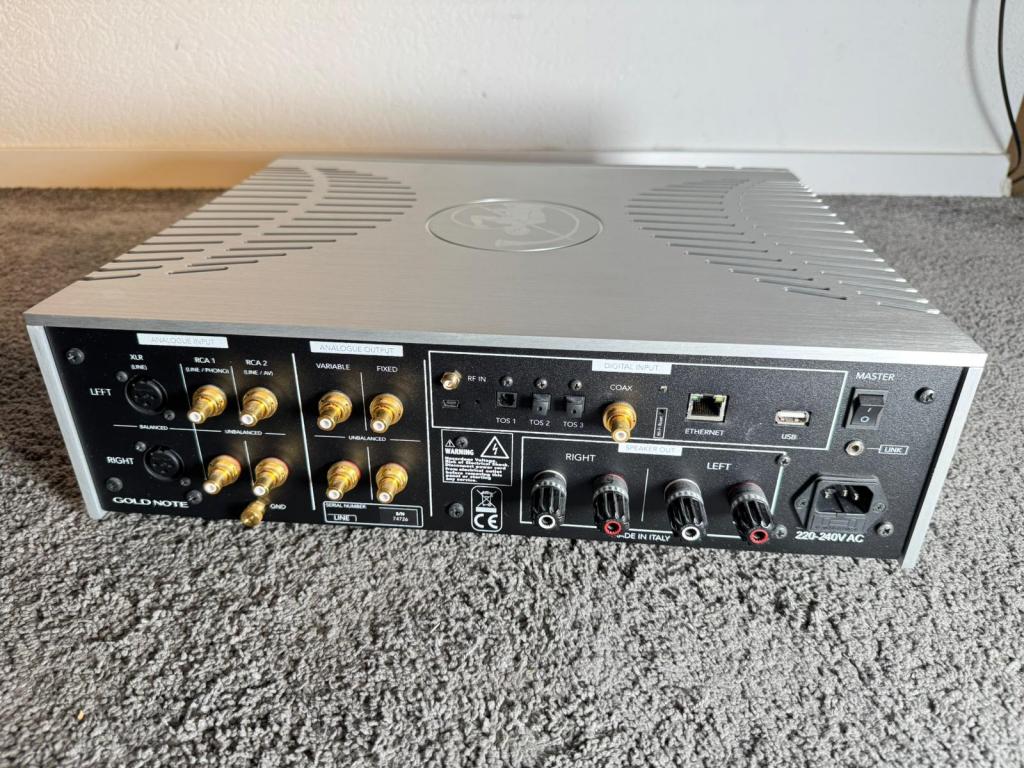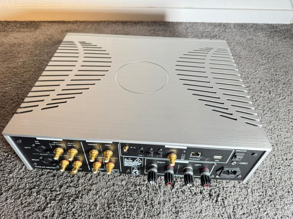 Here we sell an used but mint condition Gold Note IS-1000 integrated amplifier in silver.