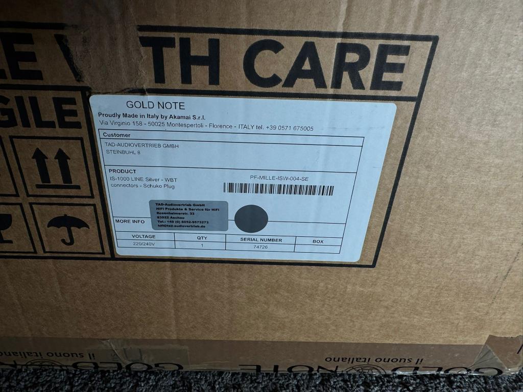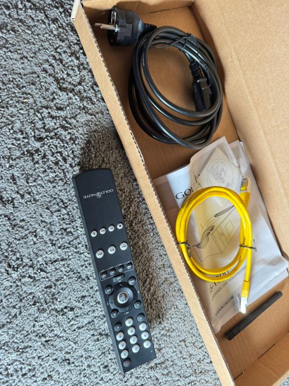 Im Lieferumfang enthalten ist: Gold Note IS-1000, Netzkabel, Fernbedienung, Anleitung in der originalen Verpackung.