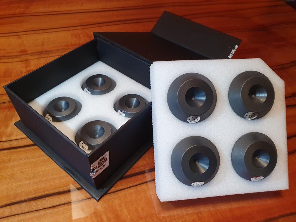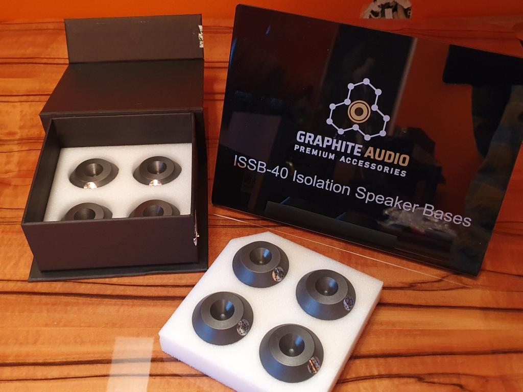 Die ISSB-40 Isolation Speaker Spike Bases verbessern die Kontrolle der tiefen Frequenzen und enthüllen Details in den mittleren und hohen Frequenzen, die zuvor ohne Betonung eines bestimmten Frequenzbereichs nicht gehört wurden. Ihr ultimatives Ziel, ähnlich wie bei anderen Zubehörteilen von Graphite Audio, ist es, Härte zu beseitigen und Natürlichkeit sowie Treue in die klangliche Leistung des gesamten Systems einzuführen. Die Isolation Speaker Spike Bases ermöglichen es Ihnen, Ihr System und Ihre Aufnahmen erneut zu entdecken.