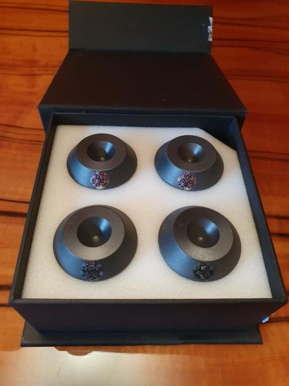 ISSB-40 isoliert die Lautsprecher-Spikes von der Unterlage, schützt die Lautsprecher vor externen Vibrationen und unterdrückt interne Resonanzen der Lautsprecher. ISSB-40 dient auch als Schutz für die Oberfläche selbst, indem sie das Risiko von Kratzern und Abdrücken durch die Spikes minimieren. Zusätzlich dazu können die ISSB-40 verwendet werden, um alle Arten von Audioständern und -gestellen mit Spikes aufzuwerten.