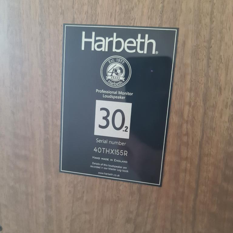 Beautiful Harbeth M30.2 40th anniversary edition monitor loudspeakers, in perfect condition, with original packaging. Also have the Rogoz Audio speaker stands for sale, model 4QB80 specialy made for the Harbeth M30, price € 750.