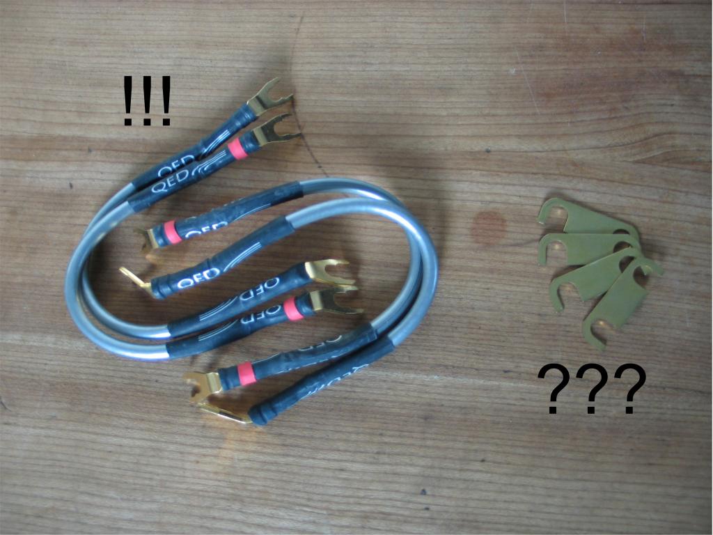 Bei den Kabelbrücken war der Hersteller ziemlich knauserig, wie auf dem Foto zu sehen ist. Die QED-Brücken gebe ich für 30 € extra ab.