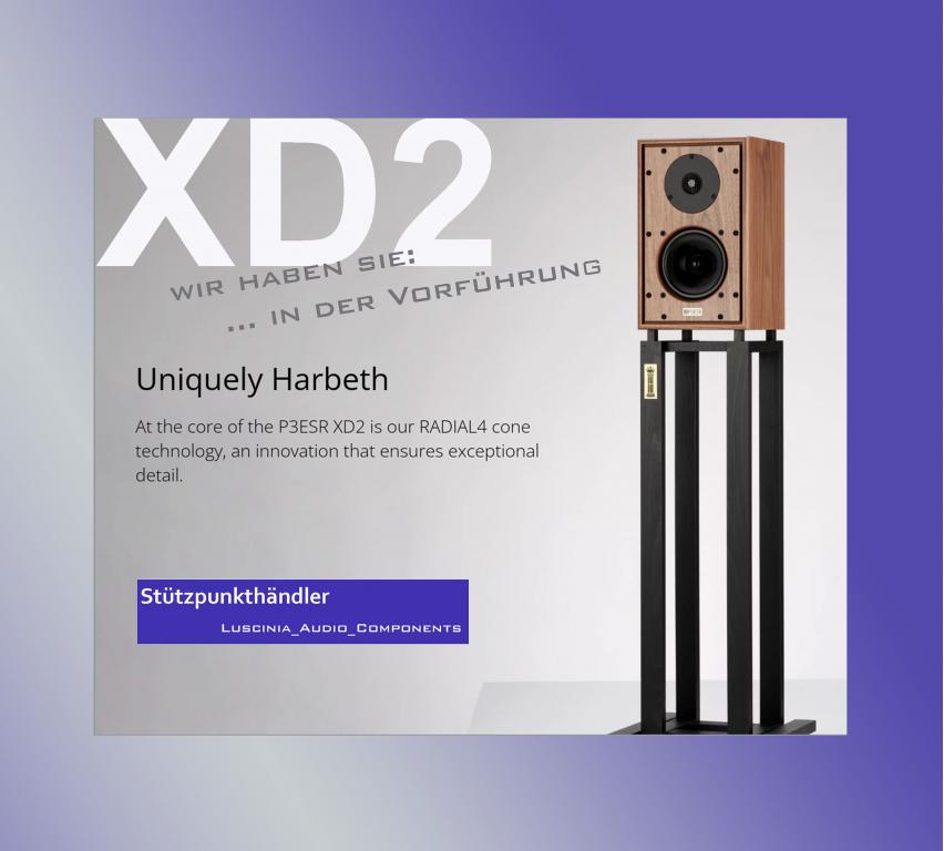 die brandneue Harbeth P3ESR XD2 - wie auch die von Harbeth empfohlenen Ständer: TonTräger Premium-Stands - + - in Verbindung mit Röhrenverstärkern ab 25 Watt oder einem sehr guten Transistor einfach unbeschreiblich gut – traumhaft … Bitte nicht anrufen, um zu fragen was nun besser ist gegenüber der XD1 - + - bitte eine Hörtermin vereinbaren und selbst hören ...