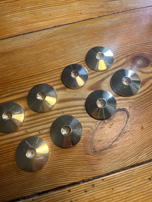 Verkaufe 8 originale Harmonix RF‑900M Million Spikebases (Spike‑Untersetzer, Durchmesser ca. 30 mm). Neupreis liegt bei rund 2.100 € für 8 Stück. Die Basen sind technisch einwandfrei, haben aber deutliche Gebrauchsspuren/Kratzer auf den Oberflächen – rein optisch, ohne Einfluss auf die Funktion. Nichtraucherhaushalt. Abholung in Berlin oder versicherter Versand nach Absprache. Preis: 599 € VB für alle 8 Stück. Privatverkauf unter Ausschluss jeglicher Garantie oder Rücknahme.“
