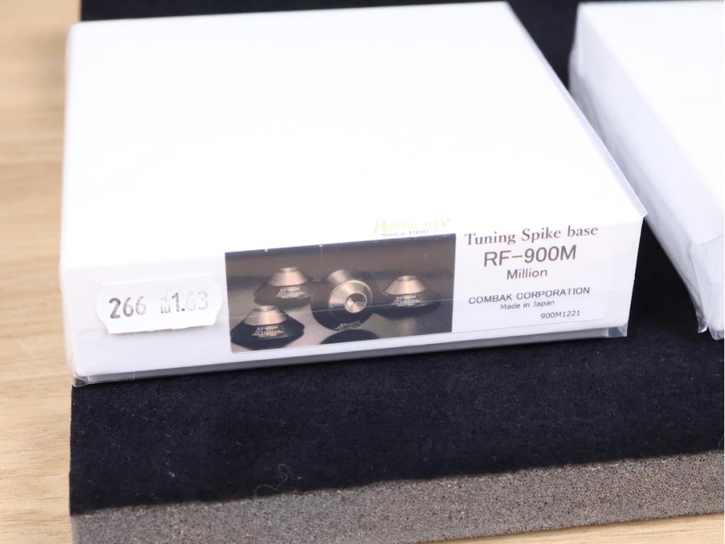 New with high 25% discount! Two sets of four Harmonix RF-900M Million high end audio spike bases (still factory sealed). Retail price is 1.100 euro for one set of four RF-900M Million, now for 825 euro for one set. Check our other listings for more interesting items. Free shipping worldwide!