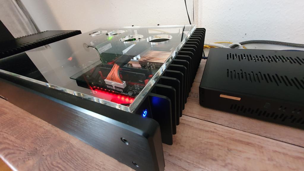 HDPLEX Netzteil und HDPLEX PC sicher verpacken mitnehmen, anstecken und wahlweise via USB oder via LAN weitergeben an Streamer ( bei mir AVM SD 8.3 )
