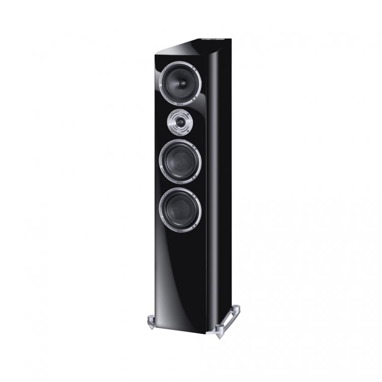 Hervorragend abgestimmter High End Standlautsprecher mit massiven Aluminium Traversen und höhenverstellbare Metallspikes. Durch die optimale Gewichtverteilung und die akustische Entkoppelung vom Boden steht einem audiophilen Hörerlebnis auf höchstem Niveau nichts mehr im Wege. Alle Frequenzen oberhalb von ca. 2.800 Hz werden vom neu entwickelten Fluktus-Hochtöner mit 30mm PFC-Kalotte übernommen. Die computeroptimierte Mehrwellen-Frontplatte des Tweeters sorgt für ein perfektes Abstrahlverhalten auch bei anspruchsvollen Musik- und Film-Sequenzen. Bass- und Mittenwiedergabe teilen sich die drei 170mm Chassis, zwei Treiber als Tief- und ein Treiber als Mitteltöner – alle ausgestattet mit der bewährten HECO Kraftpapier-Membran, die bekannt ist für ihre audiophilen Klangeigenschaften bei gleichzeitig hoher Pegelfestigkeit.