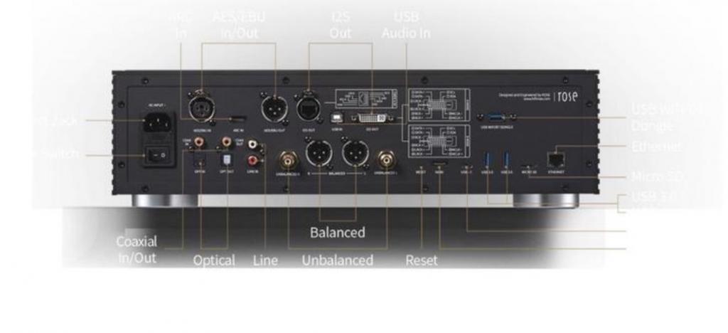 • Outputs: Pre-out (XLR and RCA), Optical, Coaxial, I2S, AES/EBU, USB Audio.