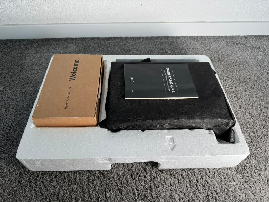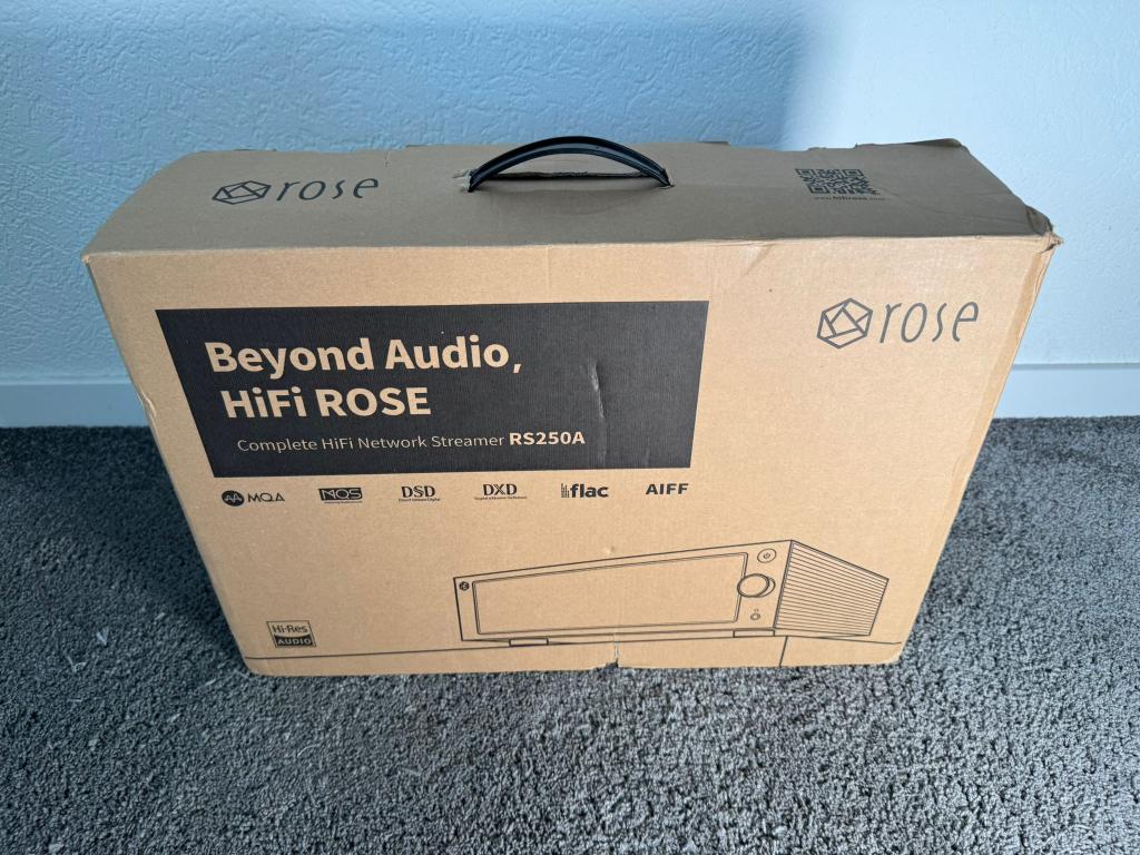 Im Lieferumfang enthalten ist: Hifi Rose RS250a, Fernbedienung, Netzkabel, Anleitung und die originale Verpackung.