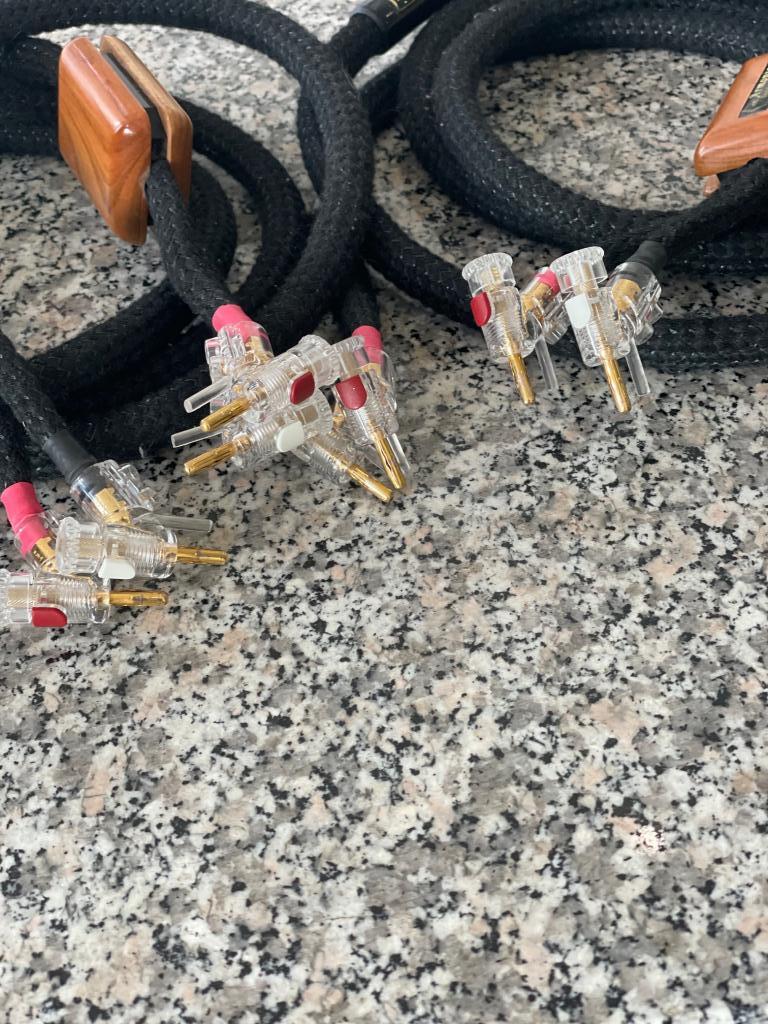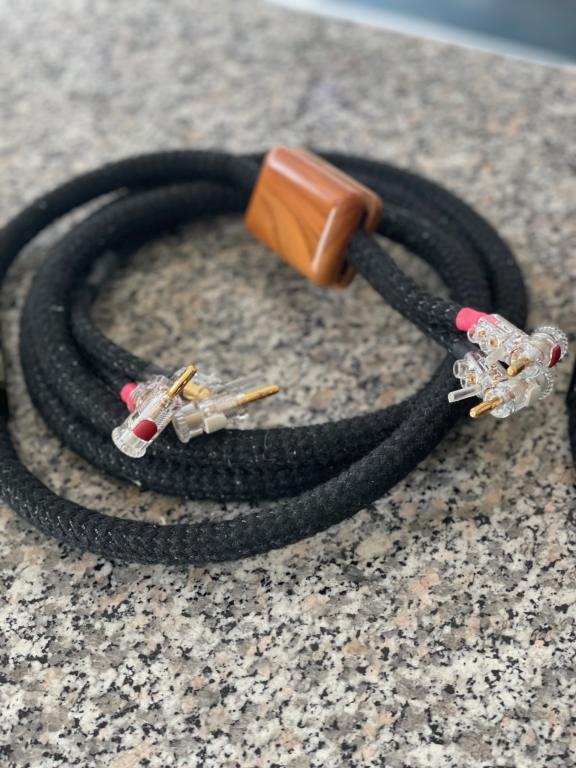 Das Kabel stammt aus Erstbesitz und einem Nichtraucherhaushalt.Es befindet sich in einem sehr gepflegten Zustand.Die zwei kleinen Holzkästchen ( Verstärkerseitig ) wurden ab Werk und auf Wunsch des Besitzers, wegen Verlegung ins Rack, nicht montiert. Und da sie nur als Kosmetische Maßnahme dienen,ist es klanglich kein Nachteil.