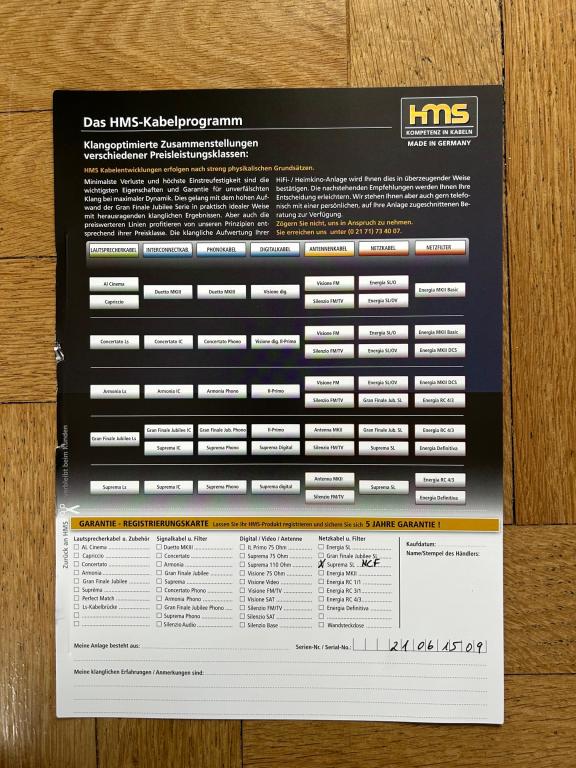 Power cord HMS Energia Suprema SL S with Furutech NCF Rhodium