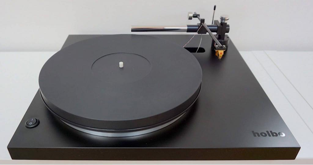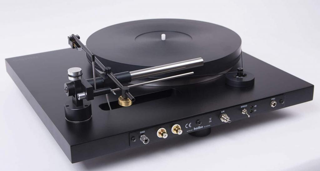 Turntable HOLBO MK I. We have for sale the last piece of the HOLBO MK I turntable, the previus type! compared to the currently current MK II type. Color matte black. Complete turntable and tangencional arm including air compressor. This original version MK I a switch for selecting the rotation speed 33/45 on the back of the turntable.