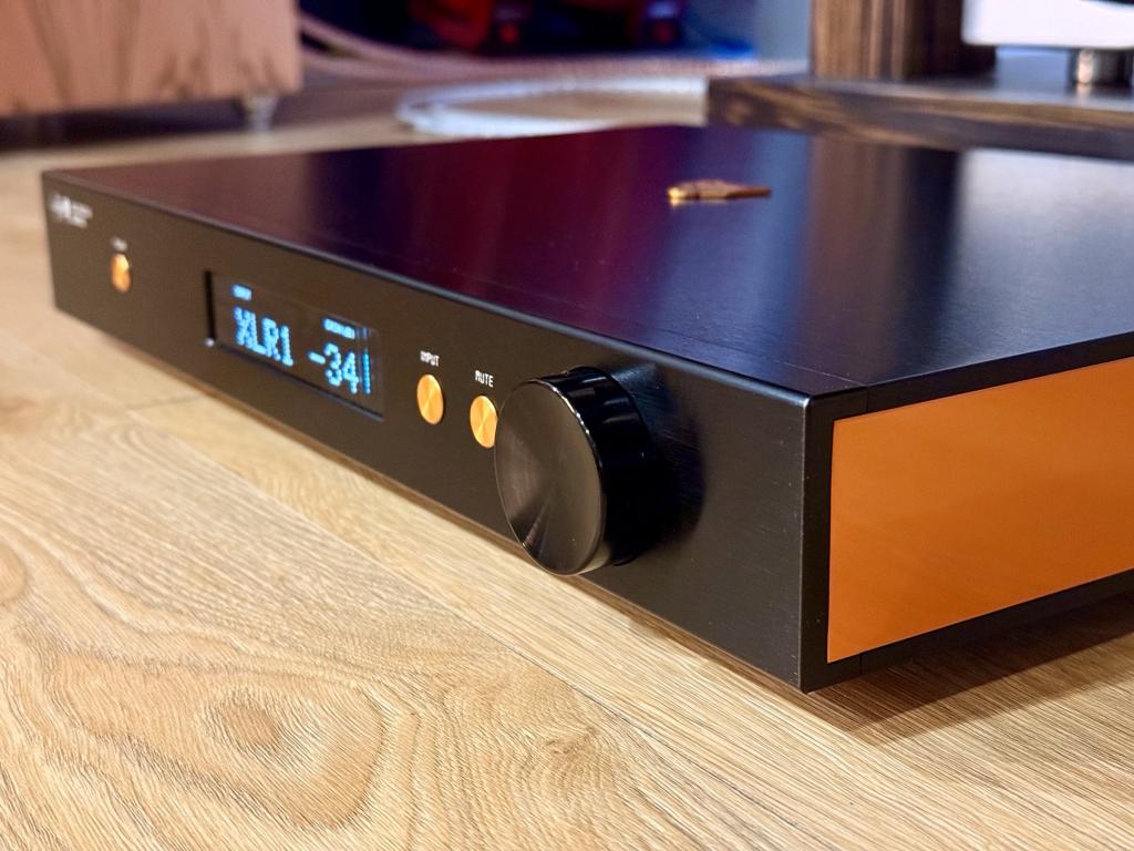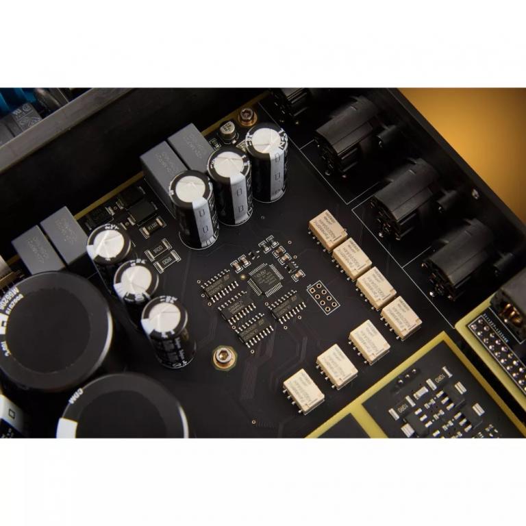 Volume control is handled by an 84-step relay-based system in 1 dB increments, enabling very accurate adjustment and tight channel matching across the listening range, even at low levels.